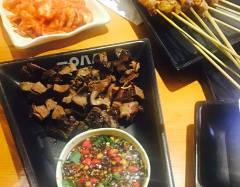 点了一个双人餐,里面有啤酒锅底,去的有些早,店家还要生火,上菜就有些慢。啤酒锅味道还是有点怪,吃不太习惯,还有就是赶紧里面的虾不入味,不新鲜。烤串和烤猪心应该是,很有味儿,蘸料是味极鲜加小米椒吧,一般吧。