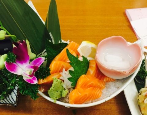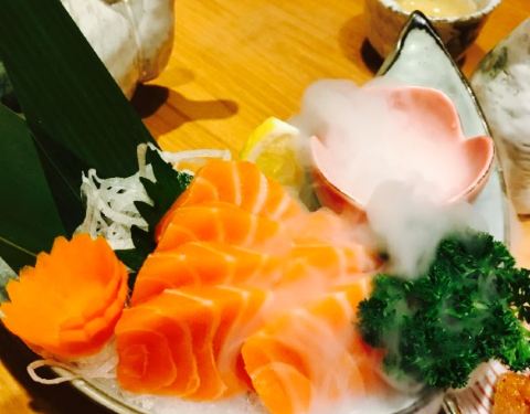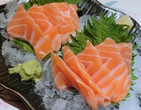 - 三文鱼刺身一定要推荐给大家,三文鱼肉质新鲜细腻,蘸上酱料吃巴适得很