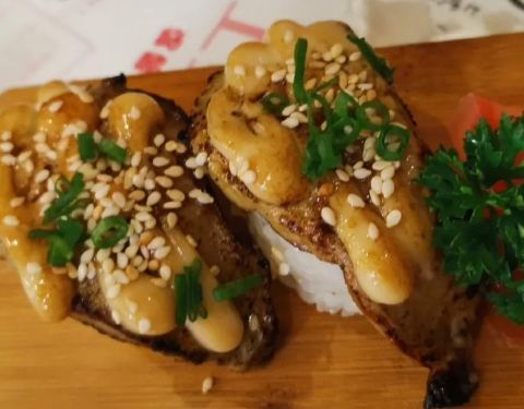 - 推荐他家的鹅肝寿司,很嫩很香口感细腻。店面挺紧凑的,基本上都是四人座,适合三两朋友小聚
