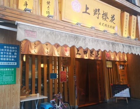 金阳路两边已经形成了美食一条街,各种形式的餐厅都有,如果要吃日式料理的话很多人首选的就是这家上野樱花,非常有名。我在大众点评上买的抵用券除了酒水不能用,其它没有任何限制,相当划算。我们去的时候有点...金阳路两边已经形成了美食一条街,各种形式的餐厅都有,如果要吃日式料理的话很多人首选的就是这家上野樱花,非常有名。我在大众点评上买的抵用券除了酒水不能用,其它没有任何限制,相当划算。我们去的时候有点晚了,大多顾客都已经吃了走了,所以有包间可以坐。金阳店环境很好,大厅和包间都干净整洁,布置的温馨可爱,座位坐起很舒服的。咖喱鸡肉饭和我想像中的一样好吃,鸡肉是炖耙了的,咖喱味刚刚好。三文鱼刺身一定要推荐给大家,三文鱼肉质新鲜细腻,蘸上酱料吃巴适得很。招牌鹅肝寿司真的是寿司中令人惊艳丽口感啊,鹅肝有点糥软入口即化的感觉,加上饭团的点缀,增添了它实在的味觉感受。店员都是高颜值的小哥哥小姐姐们,都很热情大方,上野樱花金阳店我们还会来的!