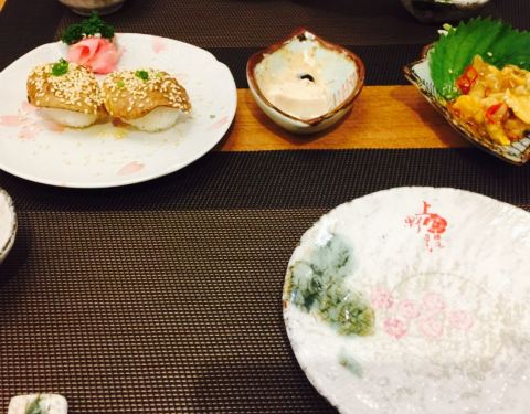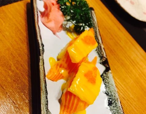 喜欢吃三文鱼,因此点了薄切和厚切两份三文鱼,的确美味,没有让我大失所望。芝士烤虾,价钱也很实惠呢,味道也巴适。虾很细嫩,融合了芝士的清香,超赞。章鱼小丸子也是吃过最美味的。几种寿司卷,可以说比较一般,没有非常的样子。服务不错,装修不算最好但是卫生敞亮,店面不大,比较温馨。