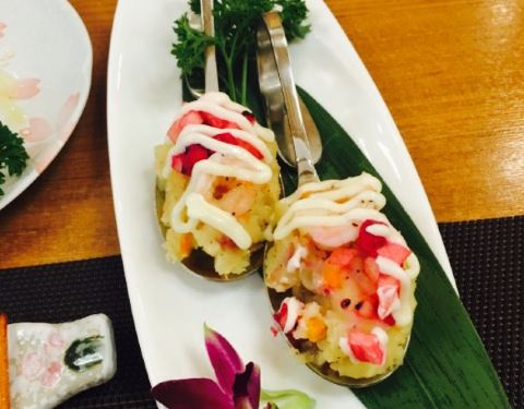 晚上九点才吃晚饭,走了几家都没吃成,本来这家不报希望的,结果去还能吃,但看了下菜单,多半是寿司手卷和面这些,那么晚了,不想吃主食类的,就点了少少的不是主食的,三文鱼厚切,必点,我不是专业的,不晓得三文鱼纹路部位肥瘦这些,只知道吃进去觉得巴适,没有加管状的芥末,加的他家自制的芥末,不呛鼻子不流眼泪,不错。芝士烤大虾也很用心,大虾烤的不干,保存了虾子本身鲜嫩,芝士表面微黄,保存了虾的清新,火候刚刚好,不错。还点了个福袋,以为里面没有米,结果还是有,很久没吃白米饭的我,一定觉得很爽口啊,但不利于减肥啊,少吃少吃。总的说来这家用心来做的日料店无论食材还是手艺都还是比较高的档次,虽然店子不大,但在这开了那么久总会有他的独特之处,是吧。