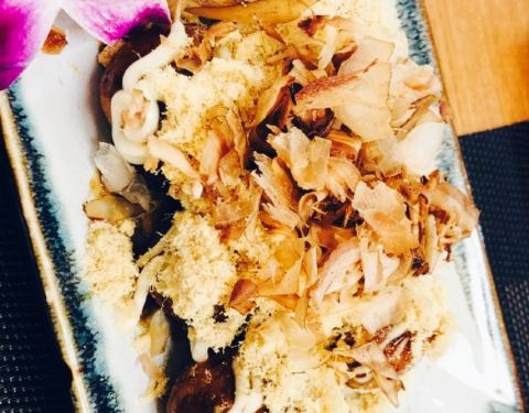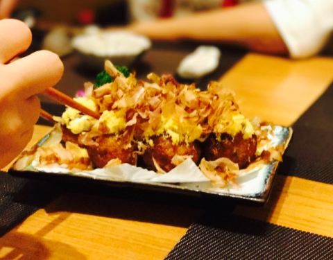 - 来成都玩天天吃辣受不了,所以决定吃餐日料。章鱼丸子,卖相不太好看,里面倒是挺嫩的。地比较偏没什么人