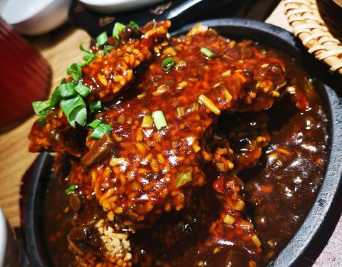 古法与新派臭鳜鱼做得正点,其他徽菜也好,喜欢酱麻鸭、土鸡汤配炒米、毛豆腐、石鸡、金钱菇焖鸭掌、香干小炒黑猪肉、炒辣椒瘪、包袱饺、毛圆汤,连餐前的腌萝卜酸辣椒都可口,还有好喝的枇杷雪梨水,人均100吃得好。