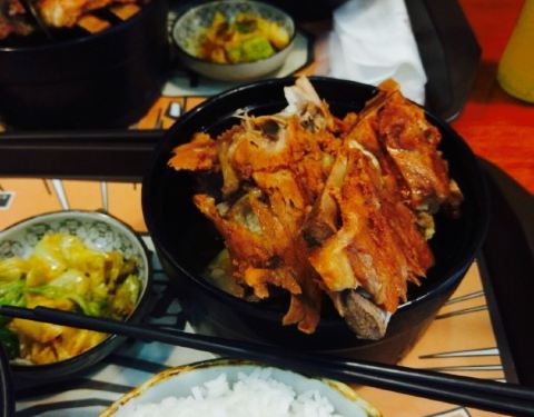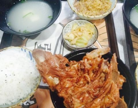 坐标,通州万达二层小吃街。店不大但是很火,许多人排队等位。价钱比较的实惠,分量很足。一份犟骨头范套餐29元,还赠送小菜。口味香儿不腻,白饭的味道也很好。赠送的小菜入味,酸菜是正宗的东北酸菜。还可以选其他口味的饭。经济实惠又美味的店??。