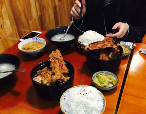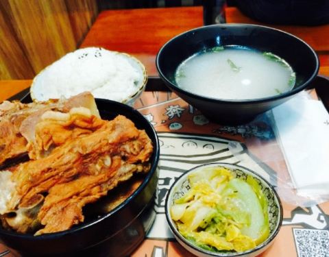之前经过看到人好多就没吃,今儿路过的时候还没开餐没人呢还就打算来品尝。我们点的一份排骨饭,一份犟骨头饭,犟骨头比排骨多了一份酸菜,我点的排骨4块肉,犟骨头3大块,量还是可以的,吃到最后已经有些腻了。毕竟价位在那边。一会儿,小店就人满为患了。汤好喝。整体还可以。还会再来的。
