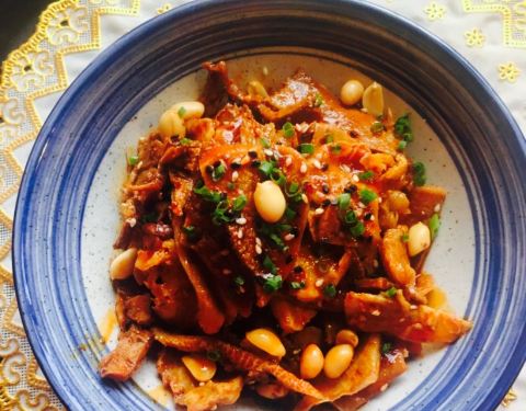 味道口感都还不错,有点儿像粤菜烧腊里的豉油鸡。菜品的样子和小店梨汤差不多,觉得更有农家菜的味道