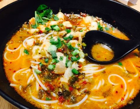 上次来πmall 。不晓得吃啥 。到处排队 。就选择这一家面馆 。等位也会快好多。点了酸菜鱼米线 。汤底酸酸辣辣 。明明标明没有辣 。但却是辣的。 。有孩子的要当心了 。要问清楚 。 。鱼肉特别嫩 。应该是龙利鱼吧。炸鱿鱼圈 。感觉踩雷了 。 。面粉多 。里边的鱿鱼不晓得是不是剁碎的还是加了啥 。反正吃不出来 。sad 。????♀️。