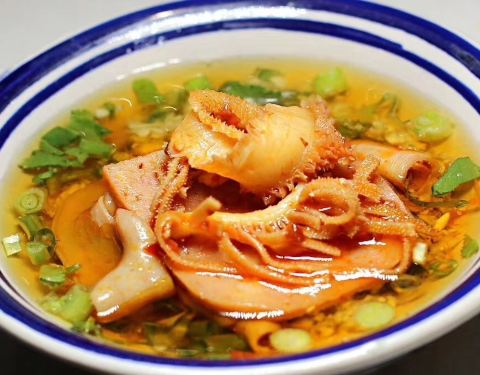 - 锅底特别好吃,汤底用的是茶水,里面还自带豆腐干,血块,小鸡蛋,味道特别香,也适合一个人去,菜品...