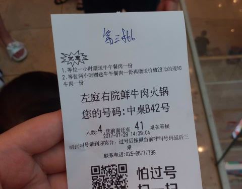 你们知道南京有左庭右院嘛?你们知道吗?我也是去了才知道的。 你不要说南京很热没人吃火锅,没这种事情的,因为店里空调够足呀,牛肉都是热气现切片的,每盘肉上面都有涮烫几秒出锅的时间,但是你不小心久一...你们知道南京有左庭右院嘛?你们知道吗?我也是去了才知道的。 你不要说南京很热没人吃火锅,没这种事情的,因为店里空调够足呀,牛肉都是热气现切片的,每盘肉上面都有涮烫几秒出锅的时间,但是你不小心久一点也没关系的还是不老的,可以试试,就是价格有点贵,也能理解吧,比较品质好服务还可以环境也不错。