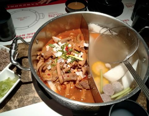 口味很不错的店,清汤完全可以喝,煮久了也不会起沫,就是生意太火爆了,下午四点拿号,我三点半去排队,居然只能第三批,晚上八点才开始点菜吃,为了吃到新鲜的牛肉我也是拼了