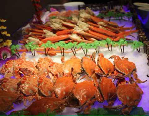 情人节那天来吃的 。比平时价格高了不少 。可是还送了一支玫瑰。菜的品种挺少的 。甜品不是很好吃 。饮料的味道也有些淡 。这个希望可以改善。每个人还可以拿一份佛跳墙 。这个味道很好 。汤很鲜。还有铁板烧上的鲳鳊鱼 。鱿鱼 。牛排 。弄的很好吃 。只是拿的人很多 。需要提前在那里等着才能拿到。平日的价格来吃吃 。还是可以的。