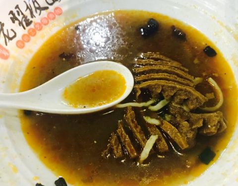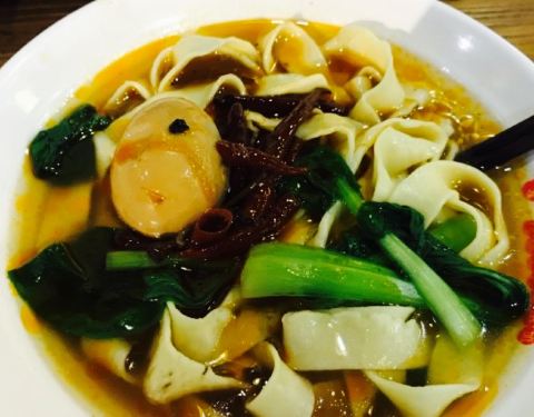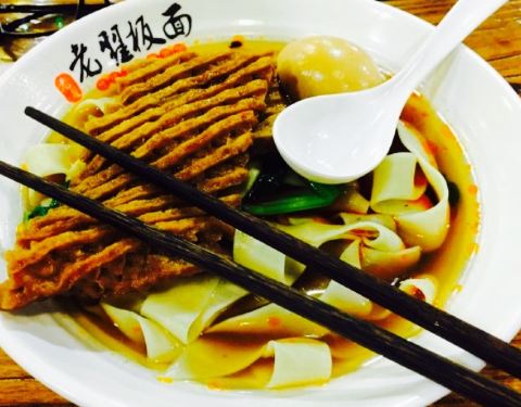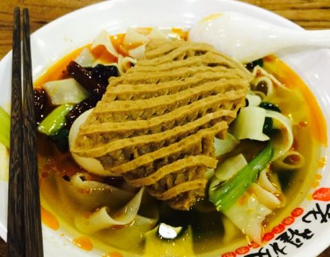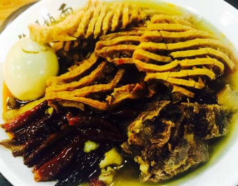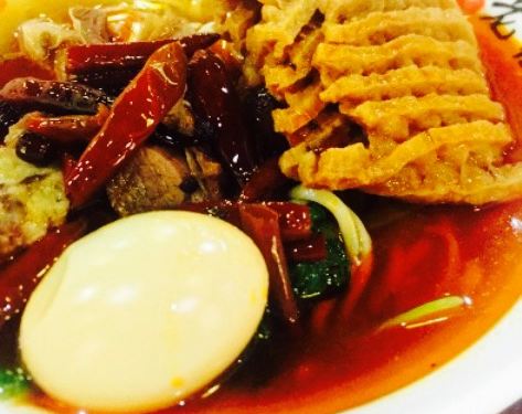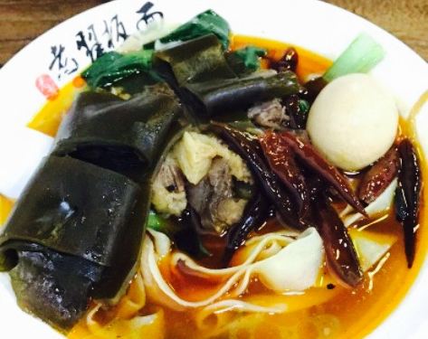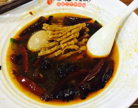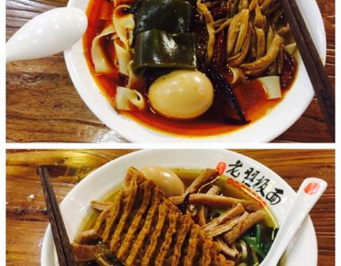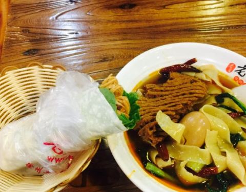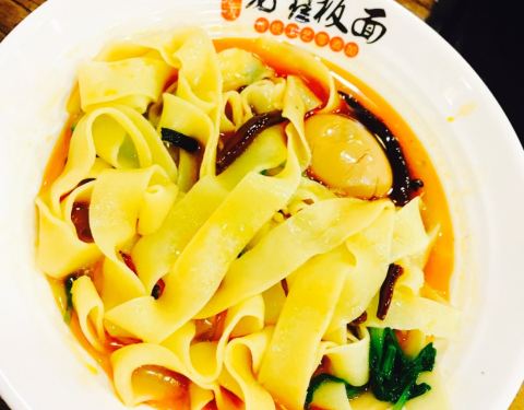 据说是徐州有名的面,过来尝尝喽,嗯。味道还不错??比较鲜,点了牛肚微辣的套餐(兰花干)和青菜中辣的套餐(黄花菜),外加了海带,素菜很美味,之前都卤过,卤蛋味道也好,不咸 。很鲜。面也劲道,分宽面和细面两种,宽面有点像刀削面的样子,细面更有韧劲,口感都不错。卤蛋和青菜是所有口味的标配,另外还有好几种素菜供你添加搭配。老板娘还设置了套餐给食客选择,优惠个块把钱而已,其中的一种素菜,可以任你选一种。中辣的貌似油不少,辣油的油,不过觉得就是很油,个人感觉不怎么辣,或许是我比较能吃辣,下次改点特辣的??环境也很好??清爽干净明亮,桌子和凳子都很大气的样子,服务生的服务态度很热心,整体觉得挺好的??。