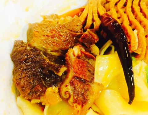 先哼一下不让我吃小馄饨的盆友,确实好想吃啊。买完瓜子就想到N久前路过的这家面条,好奇的要命了,就来了。单点了牛腩面,面选的是宽面。牛腩真的不少,像是卤味的牛肉,很美味,就是略咸了,吃完齁了点儿。宽面...先哼一下不让我吃小馄饨的盆友,确实好想吃啊。买完瓜子就想到N久前路过的这家面条,好奇的要命了,就来了。单点了牛腩面,面选的是宽面。牛腩真的不少,像是卤味的牛肉,很美味,就是略咸了,吃完齁了点儿。宽面条很像手擀面的口感,很劲道也不会砣,吃起来也有点像大盘鸡里拌的那种面条,很不错的。选的微辣,还可以了,有麻辣了,也或许是我这两天瓤。