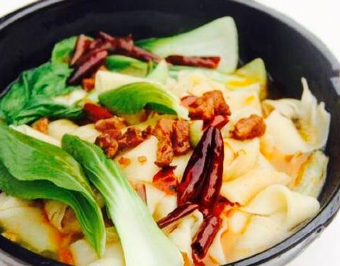 - 宽面条很像手擀面的口感,很劲道也不会砣,吃起来也有点像大盘鸡里拌的那种面条,很不错的