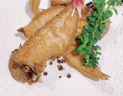 其中特别开心有这些。鲑鱼做的苏式熏鱼,非常酥脆。许多菜没拍,不过都很不错?老实说,其它菜都没来得及吃