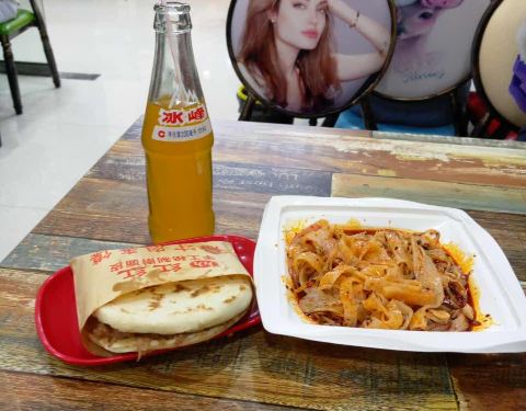 味道还不错,肉夹馍汁很多,肉也嫩,酸辣粉和米线是我的最爱,很棒,给好评,下次还会再来