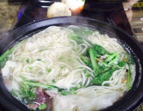 - 还得推荐宽面条,面条可是管够的,他家是一条一条上,一个人吃完一斤虾差不多还能来五根面条,没来的...