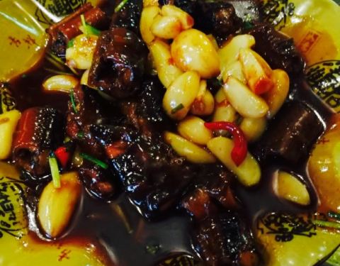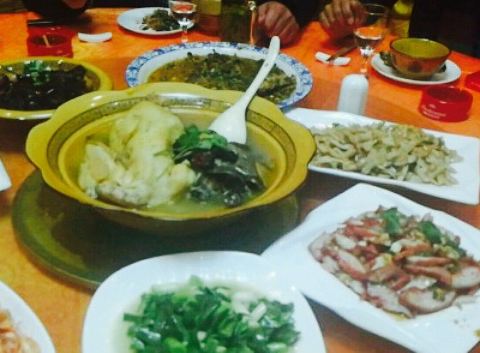 馆子就在河边,菜品份量大价钱很公道还有时鲜菜的本地特色菜。周末出游闲逛古镇,就在古镇上找了一家菜馆