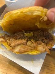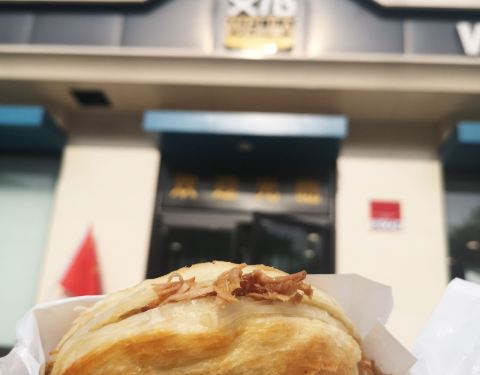 - 连续吃了四天酒店相同的早餐,今天不吃了。 馍香脆无比,买的是升级版的,肉也很多,就是肉的酱汁少了些