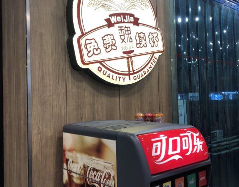 高大上的魏家凉皮啊。我的最爱,之前天津没有,忽然雨后春笋一般开了这么多家分店。这家正好在单位附近,好合适的说。在西安,在太原店里的环境,远远没有这里好。客人坐着很清爽,挺清净的。门口的饮料免费续杯...