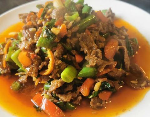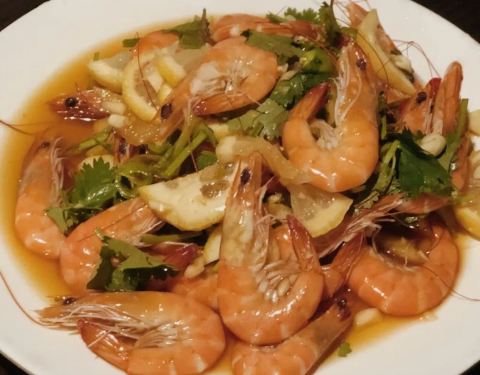 小店在斗富二桥,周围都是老房子,店里桌椅都是那种老式木质的,柠檬虾味道不是很,虾还比较多,小炒黄牛肉炒得很香,酱汁味道很好