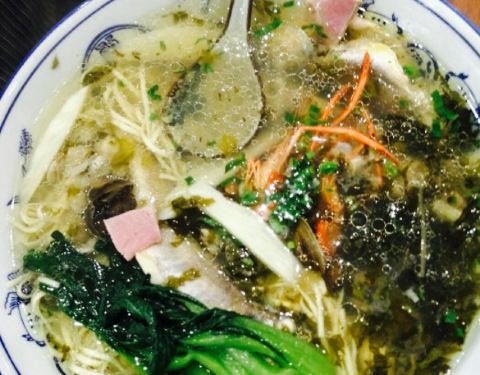 虽然远在太平镇,可是好多很远地方驱车赶来吃面的人,生意是特别的好,桌子不是很多,去晚了要等位,这次点了招牌昂刺鱼面,面里有昂刺鱼,小螃蟹,虾,都是爽口的东西,一起煮出去的汤面,鲜的要命,还点了小肠面,很整洁的小肠,爽口,还有咸菜茭白毛豆面,她们家的咸菜真的腌得很入味,恨不得打包一份带回家。