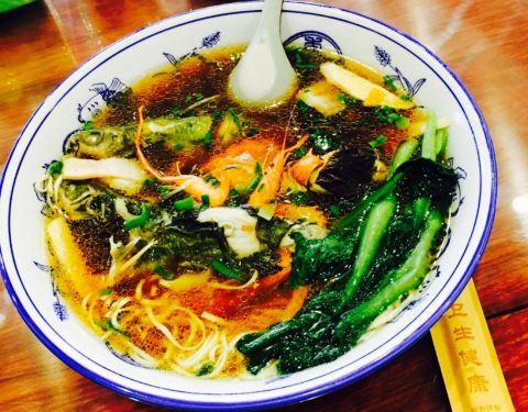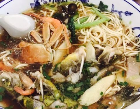 同事推荐说味道很棒,所以中午就和同事一起来吃了。点了肚香面,面汤比较单调,面也爽口,有点点咸,整体味道还是不错的了。他家的招牌面,昂刺鱼面,有一条昂刺鱼,一个螃蟹,很大一碗,48元,听起来贵的,不过...
