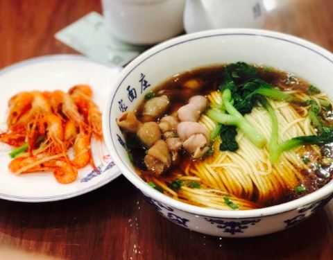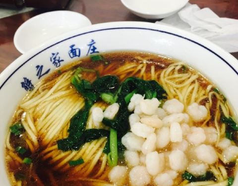 招牌是少见的昂刺鱼面,店内还有外面不常能吃到的湖虾面和蚬肉面,老板在阳澄湖承包了五万亩水域养殖鱼、虾、蟹,店内作浇头的湖鲜就全部来自阳澄湖中。