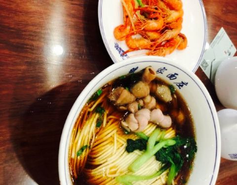 ...湖虾面和蚬肉面,老板在阳澄湖承包了五万亩水域养殖鱼、虾、蟹,店内作浇头的湖鲜就全部来自阳澄湖中