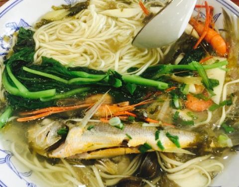 铺子就在兴太路17号,看到施斌聊斋上介绍的,所以特意过来尝尝一下。店内环境还可以,服务还挺不错的。既然来了,那就应该尝尝电视里昂刺鱼面,一碗面48元挺贵的,可是因为是现做,而且端上来后,立即就觉得还是挺值得的。首先,汤的味道特别的不错,特别的美味。昂刺鱼,特别的鲜美,螃蟹的味道也十分的赞,而且螃蟹的个头也不是很小。总的来说,这家店还是挺不错的,下次有机会会再来的。