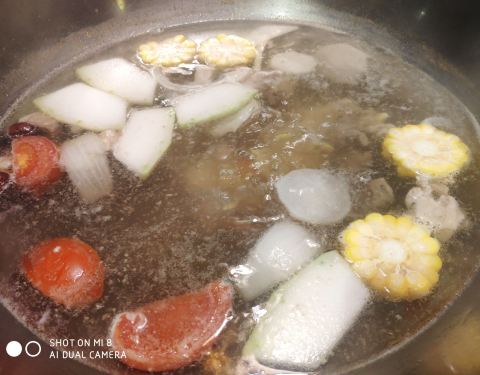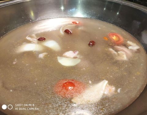 - 次完羊肉再在火锅里煮点儿小菜,小米粥味道也不错哒