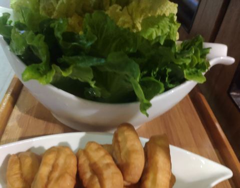 - 凉菜比较爽口,然后是烤全羊,比我想象中的要小,吃到后面有些凉了就比较腥,羊肉有些部位的肉比较柴...