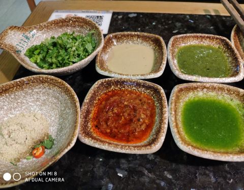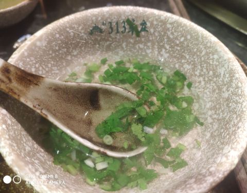 313的羊肉真心是我吃到过最美味的羊肉料理啊,吃的工序上也是好讲究,先喝清汤。然后还有四盘调料选择