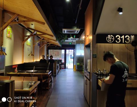 313的羊肉真心是我吃到过最美味的羊肉料理啊,吃的工序上也是好讲究,先喝清汤。再喝放香菜葱花的汤,接着在吃羊肉。羊肉放在黑胡椒白胡椒加泰椒的汤汁里吃。然后还有四盘调料选择。吃完了羊肉才下蔬菜。最后再放...313的羊肉真心是我吃到过最美味的羊肉料理啊,吃的工序上也是好讲究,先喝清汤。再喝放香菜葱花的汤,接着在吃羊肉。羊肉放在黑胡椒白胡椒加泰椒的汤汁里吃。然后还有四盘调料选择。吃完了羊肉才下蔬菜。最后再放小米熬粥。这样一顿吃下去很安逸。然后他家有个饮料是推荐的。水果茶,大概一壶里面有十种材料之多。桂圆枸杞葡萄干等等等。这家313给我的还有个大的样子是装修的很整洁清爽有点小清新小精致。哈哈楼梯那里还有小样的大摆设。门头的样子也不像是吃烤羊的地方。噗。我路i过的时候一直以为是吃西餐之类的。嘿嘿,赞赞哦。 - 里边的布局很不错喜欢里面一只只小羊,附近上班吃饭夜宵都很合适,环境也不错,服务人员也挺好,能再...