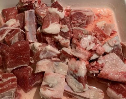 ...块的,不是平时吃的一肋条一肋条的,会比较油腻,100多一份,觉得价位有些小贵,因为一份有点少啊