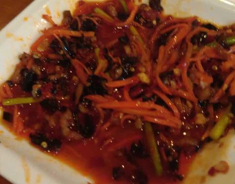 ...次他们家推出了新的菜品 香辣猪蹄,上面撒了点蒜蓉,真的很好吃,值得推荐,满满一大碗都被我吃完了