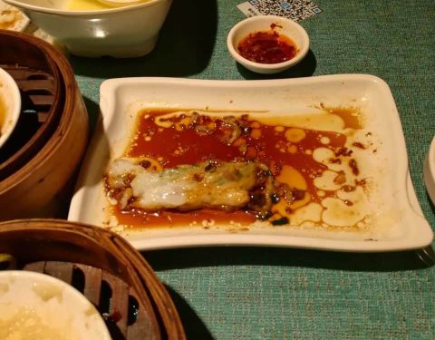 虾饺,饺子皮透亮,里边的虾很大个,口感很好 叉烧也不错。 店里送的例汤也不错,很解腻