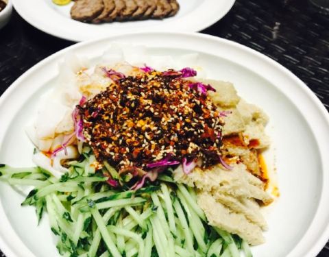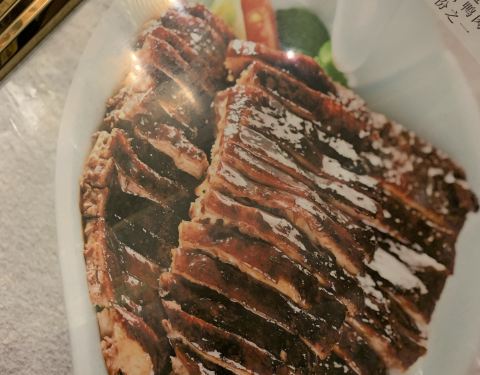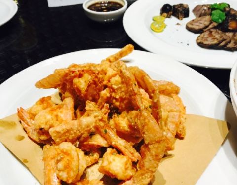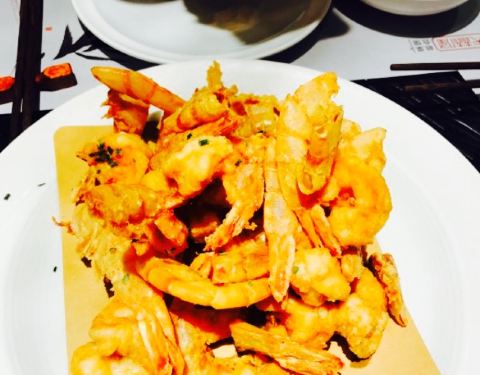 虾是咸鲜味的,虾皮非常的酥,虾肉又特别有Q,可见厨师手艺功底。鸡爪,牛腩金桔,还有大排骨,特别的软烂好吃。面筋是香辣的,是川味的口感。山药焗蘑菇,特别有特点的素菜,清淡又有滋味。蒜汁牛肉,中规中矩,...