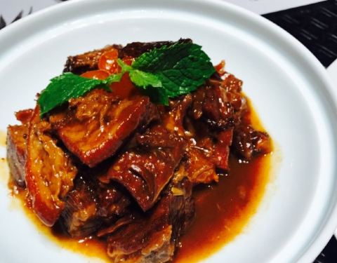 虾是咸鲜味的,虾皮非常的酥,虾肉又特别有Q,可见厨师手艺功底。鸡爪,牛腩金桔,还有大排骨,特别的软烂好吃。面筋是香辣的,是川味的口感。山药焗蘑菇,特别有特点的素菜,清淡又有滋味。蒜汁牛肉,中规中矩,没有其它菜有特点,可是也完全好吃。
