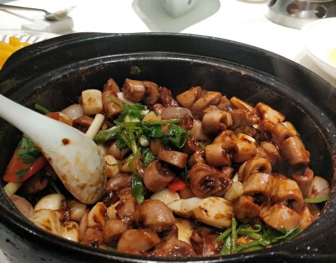 山药焗蘑菇,特别有特点的素菜,清淡又有滋味。鸡爪,牛腩金桔,还有大排骨,特别的软烂好吃