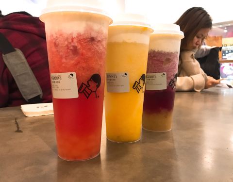 看到不排队的喜茶还是很心动呀,犹犹豫豫索性改签,坐下ho一杯 其实是想吃冰淇淋,然鹅,冰淇淋机坏了…… 虽然点单不用排队,不过前面还是有挺多单子的,这家喜茶也比较小,做茶的人手不多,加上喜茶做的比较慢...看到不排队的喜茶还是很心动呀,犹犹豫豫索性改签,坐下ho一杯 其实是想吃冰淇淋,然鹅,冰淇淋机坏了…… 虽然点单不用排队,不过前面还是有挺多单子的,这家喜茶也比较小,做茶的人手不多,加上喜茶做的比较慢,所以等茶等了四五十分钟吧,期间把去LADY M打包的千层都吃光光了 多肉葡萄,最好喝,葡萄去皮去核,全是果肉,特别满足,葡萄本身也填 芝芝莓莓感觉没那么好喝,有点偏酸吧 上面2个是季节限定,由于喜茶水果用的多,水果的品质直接决定了口味,即使同一款茶,不同城市的味道还是不同的