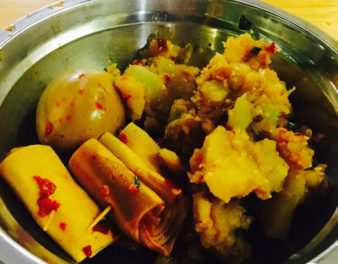 当地朋友超级推介的。这家店在新世界百货后面巷子里,鲜目录寿司对面,挺难找的我们找了许久。因为是上午去的,最美味的鸡肠子暂时没做好,就点了卤粉,还有各种卤味像藕片豆干,我第一次吃到辣味土豆泥(土豆泥...