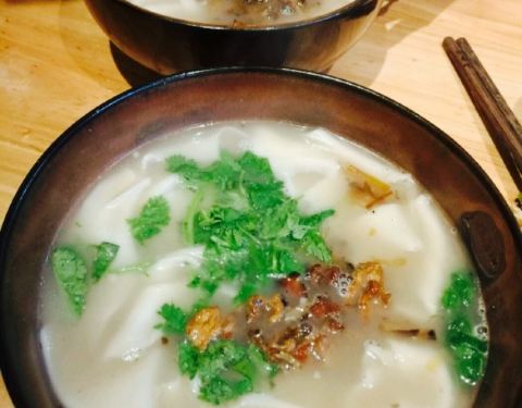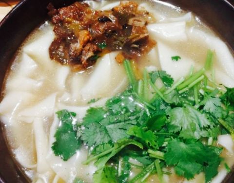 张老炝方城炝锅烩面,前天看美食推荐,说有一家南阳方城的炝锅烩面,看得口水直流。老板娘说碗是特质的,这大碗吃起烩面来就是得劲。老板娘的顺口溜,肉炒焦,葱炒黄,一爆一炝加高汤。一闻一尝一吸溜,最好放上辣椒油。老板娘很有才啊。面很劲道,汤味很鲜,卤肉也是必点,软烂好吃,菜肴也很适口,位置就是有些远,只是为了好吃,距离再远都不是事??。