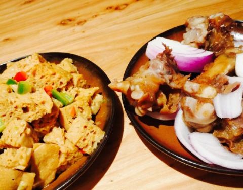 ...该,然后他们这个猪蹄我原本想着挺油的,没想到吃起来一点都不油,连白肉都不觉得油,觉得超级好吃哎