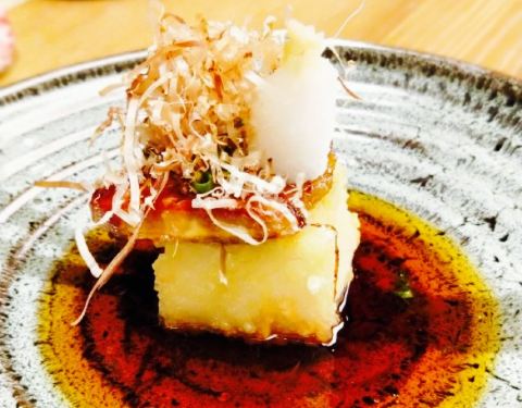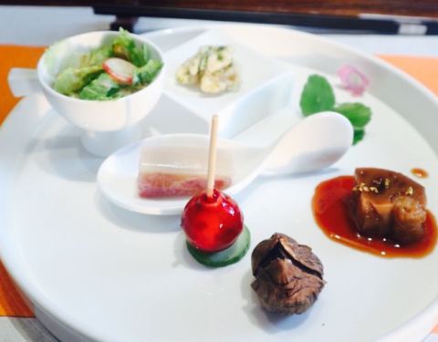 在拈花湾景区里搜索美食排名最靠前的店之一。在景区里住了两晚,天天团餐,吃得都没想法了,好不容易找到家像样的。找店的过程也是特别醉,地图定位在景区门口外面,一行人跟着地图一路穿越整个景区就快出去了,问了门口工作人员才明白原来就在自己对面。什么破定位囧。一番波折找到的地方没有让我们大失所望,进门这酷似日本京都料亭的院子就让人眼前一亮。店里位子不多,特别宽敞,我们去的巧,正好有4人空位。店员说量少一人点了份198的套餐,可是吃了就发现量并不少,根本吃不完。青花鱼味增烧烤制的特别爽口,薄薄的外皮很脆,肉质细嫩,好评。还有小羊排里的配菜玉米,又香又嫩,感动到了。其它菜大多都中规中矩,但在景区里简直不能更满足。唯一不足是上菜太快,桌子都放不下了还硬要上,说是放在厨房会冷掉,那难道你放在客人桌上就不会冷了么,还是认为这样就不关你事了,无语。最后坚持让店员拿走,服务减分。吃完出来天已经黑了,到旁边平常居转了圈,夜景真是赞爆了,再来个温泉就实在是京都了嘿嘿。听说住这早饭就在浣月吃,比跑去主街的小店舒服不少,下次来可以考虑住住。