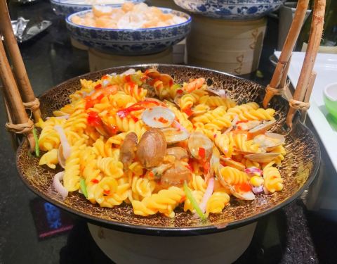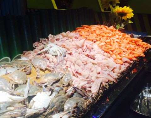 食物种类很多,特别是生鲜类,但是三文鱼要靠抢的,出的太少,拿的人太多了。鲜榨果汁供应很充足,烧烤肉类也很多,小牛肉特别好吃。服务员态度很好,也很照顾小宝宝,有宝宝椅子和餐具提供。