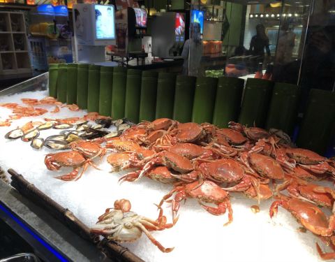 自助餐,最能体现一枚吃货的战斗力,也是最吸引吃货的一种就餐范。而现今的自助餐也不再高不可攀,除了高星级酒店动辄人均数百元的标准,几十元的烤肉自助更为亲民,生意也都还不错,在我们甬城也有这么几家专注做自助的食堂。钱小奴就是其中一家,环城银泰店的生意相当不错,8月东部银泰也开了新店,位于广场四楼,生意也是相当火爆,高峰期都需要排队等位。餐厅的营业面积相当之大,菜品也相当丰富,点心区,烤肉区,火锅菜品区,刺身区,海鲜区等等。刺身区,此区也是体现自助餐档次的一个重要标准,她们家最受欢迎的应该还是三文鱼,三文鱼都是刺身师傅现切的,他家师傅也是很大气,一次都能切足够的量,和朋友两个人拿了两次就不再取了,可惜三文鱼口感略硬,毕竟成本在那边。沙拉区,他家的沙拉区的酱汁可选的较多,去的时候刚好有冰草提供,他家的冰草也是相当新鲜,一边烤肉一边食草的样子很有趣。海鲜区,海鲜区的种类也还可以,第一次去取的时候,海鲜基本挑剩了,因此比较一般,第二次去聚餐的时候,朋友挑了两个超大的白蟹,肥美无比,两个大的白蟹在小火锅里还煮不下,相当之棒。调料区,虽然不是菜品,但也同样重要,他家的酱汁也很丰富,烤肉酱和烤肉粉都配得很齐,粉和酱料与生菜烤肉搭配,还是相当赞的哟。关于服务,小奴家的服务基本标准吧,只要一招呼,服务生都能及时提供服务,还可以吧。