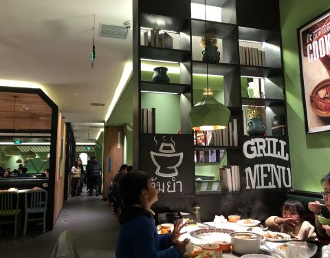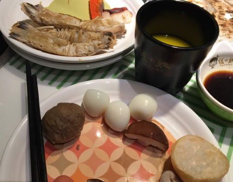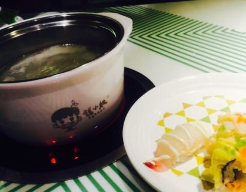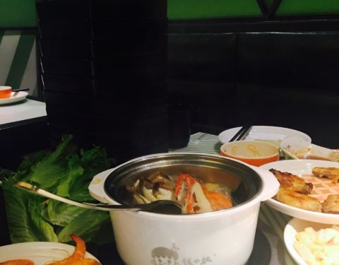 因为怕胖,大约有两三年没这样吃了,最近一段时间突然很想吃,就去了这一家。一坐到那边,实在是各种放开吃,烤培根,烤鱼片什么的,估计吃了有8盘。表扬一下他家的服务生,特别有眼力见,服务态度很好,很亲切。饮料区有可乐,还有各种果汁,椰奶很好喝,味道很足。只不过没吃到他家的扇贝粉丝,人真的太多了,扇贝根本轮不到我,生蚝味道还不错,就是烤久一点会好许多的。涮的这个锅,汤底好像蛮不错的,和其它家自助火锅相比,这家蛮占优势的。