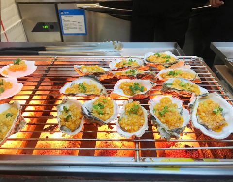 烤物类喜欢烤鸡心,火锅类喜欢活虾和蛏子,不过蛏子个头较小。冰激凌一定要我早点去拿,晚了就没有了